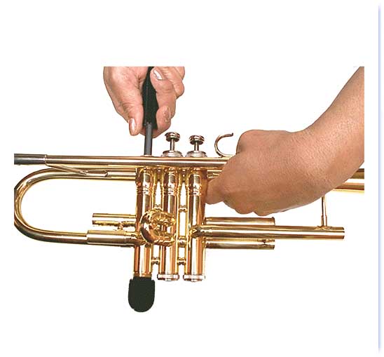 The HW Products Brass Saver set for Trumpet includes a pull-through brush for the leadpipe/slides and a double-ended stick brush for the valve casing/tubing.