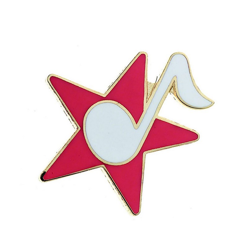 Speldje van een ster met 8ste noot. Verschillende kleuren.