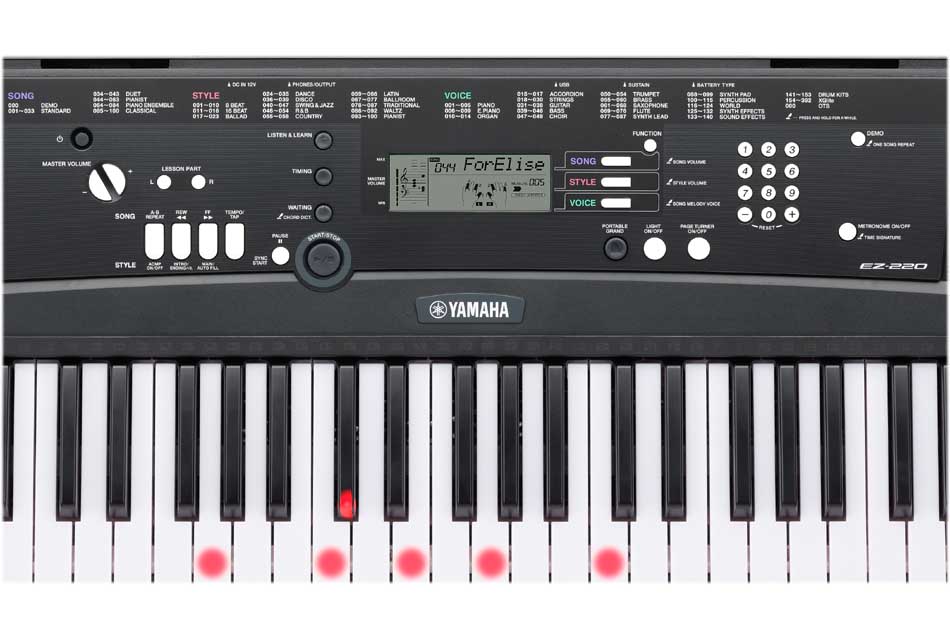 Handige Light Guide-functie laat u zien welke noten u moet spelen met oplichtende toetsen